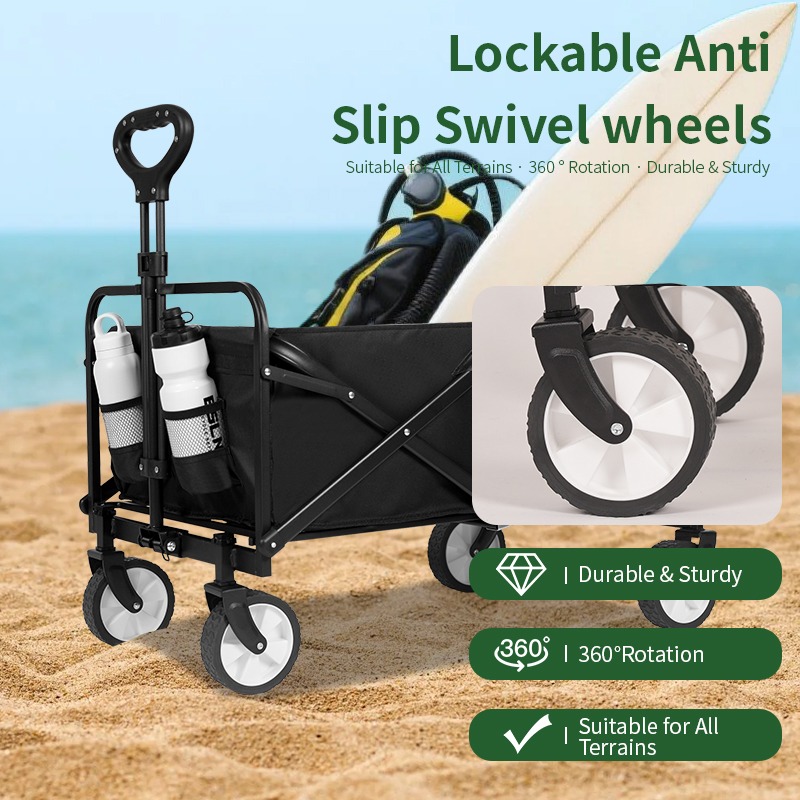 5-inch Camping Cart - Large-capacity Foldable Beach Cart, Suitable For Various Occasions Such As Camping, Sports, Shopping, Etc., Portable And Ea
