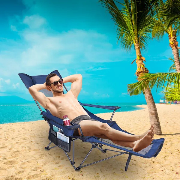 *Hands-free Chair*:Come with a mesh cup holder,everything is within arm’s reach. Rest on the camping chair,drink a cup of coffee,and enjoy sunbathing. Also comes with a side pocket,convenient to put your essentials.